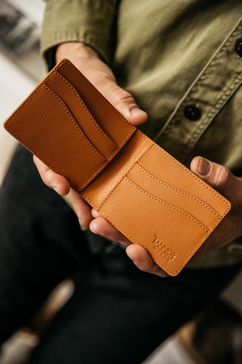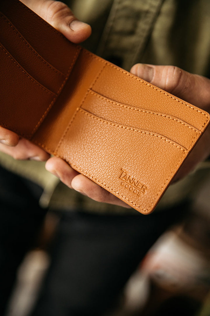 Tanner Goods now offers an alternative to genuine leather. Introducing the Recycled Utility Bifold. Constructed from 100% recycled material, the leather is collected solely from leather glove cut-offs. Those scraps - usually headed for the landfill - are then crushed and bound with natural latex to produce a lightweight and resilient product that mimics the aesthetic and tactile qualities of genuine leather.  Certified and traceable through the RCS 100 (Recycled Claim Standard).
