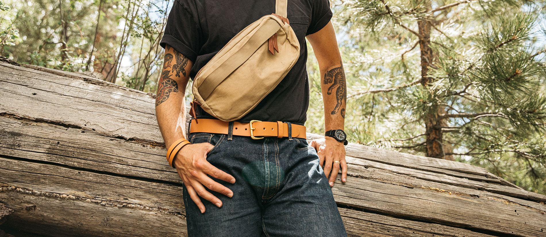 Measuring 1.5" wide and constructed from 10-11oz vegetable-tanned leather, the Standard Belt features through-hole press fit rivets and a roller or cast-brass buckle.