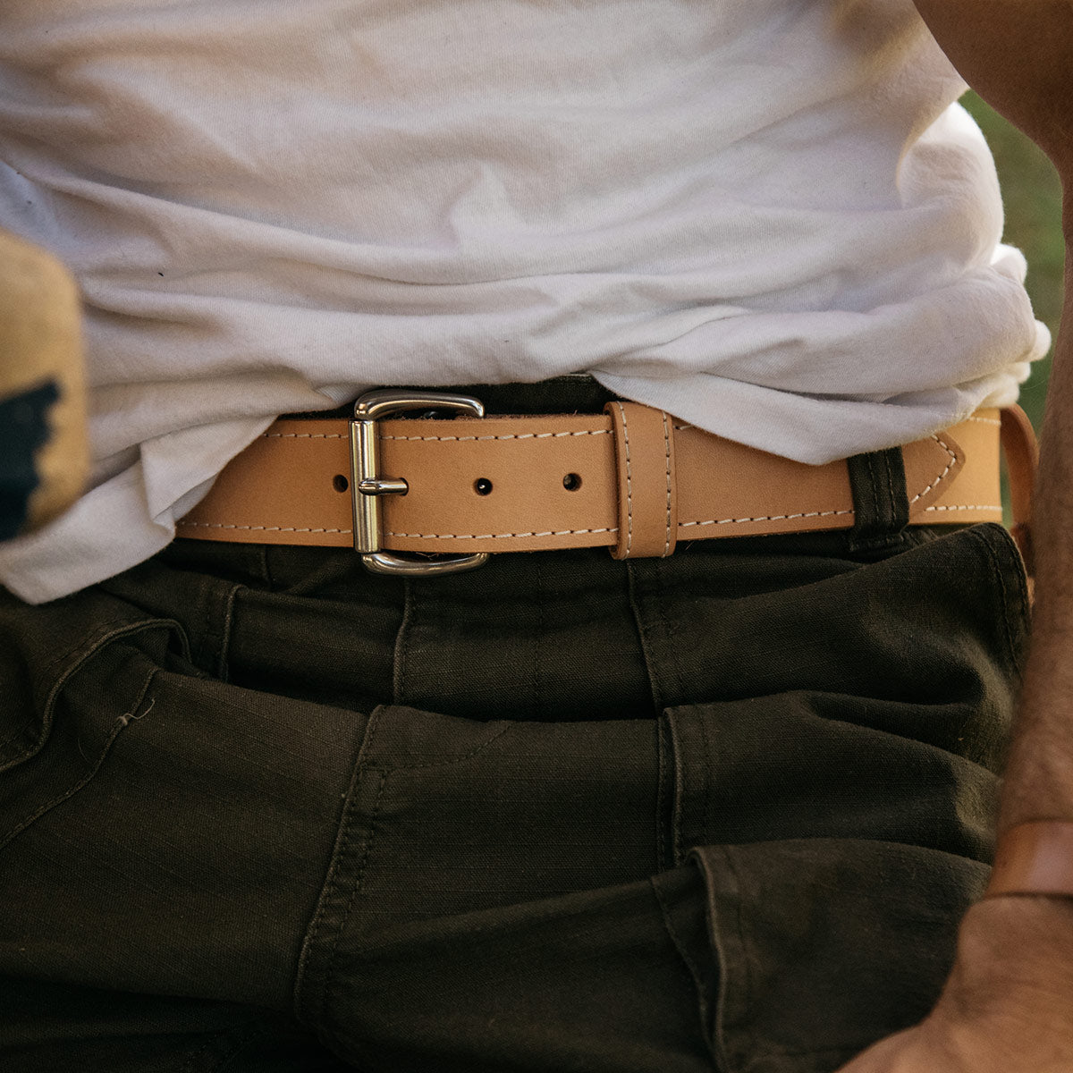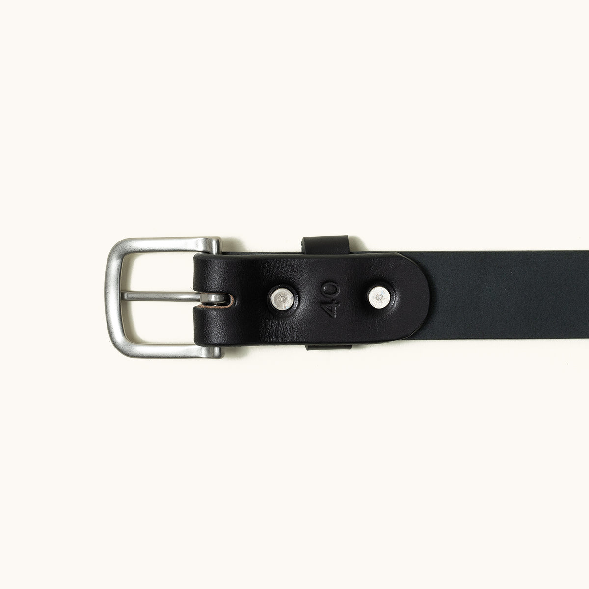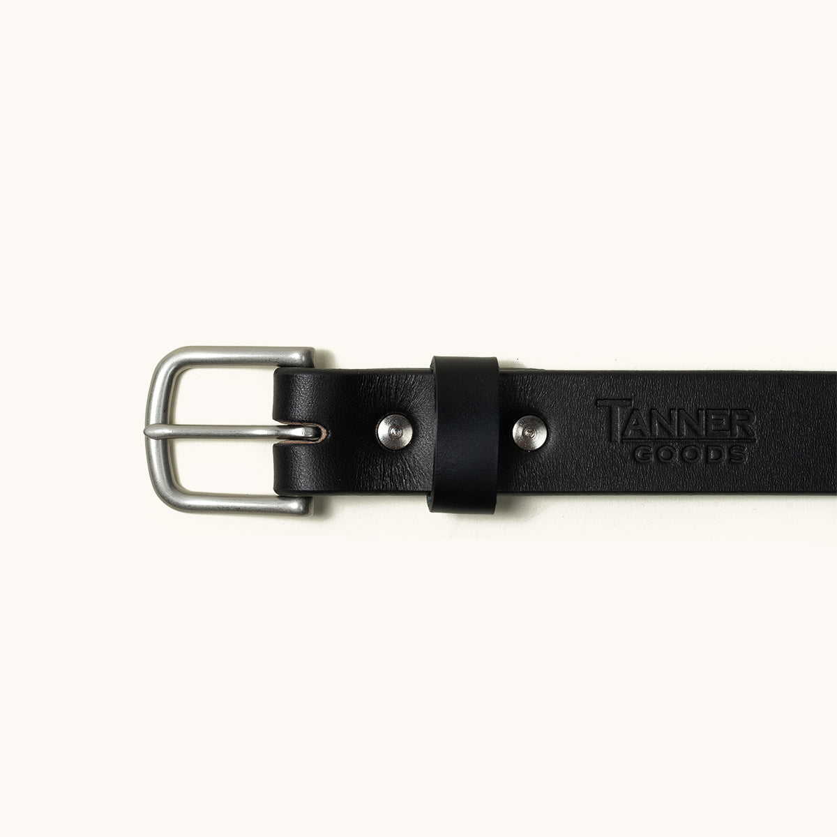 Tanner Goods leather belts come in a variety of width, color, sizing and buckle options. Our belt sizing corresponds to the length between the turn of the buckle and the first hole closest to the buckle. For instance, a Tanner Goods size 34 belt is 34” from the belt fold to the first hole.