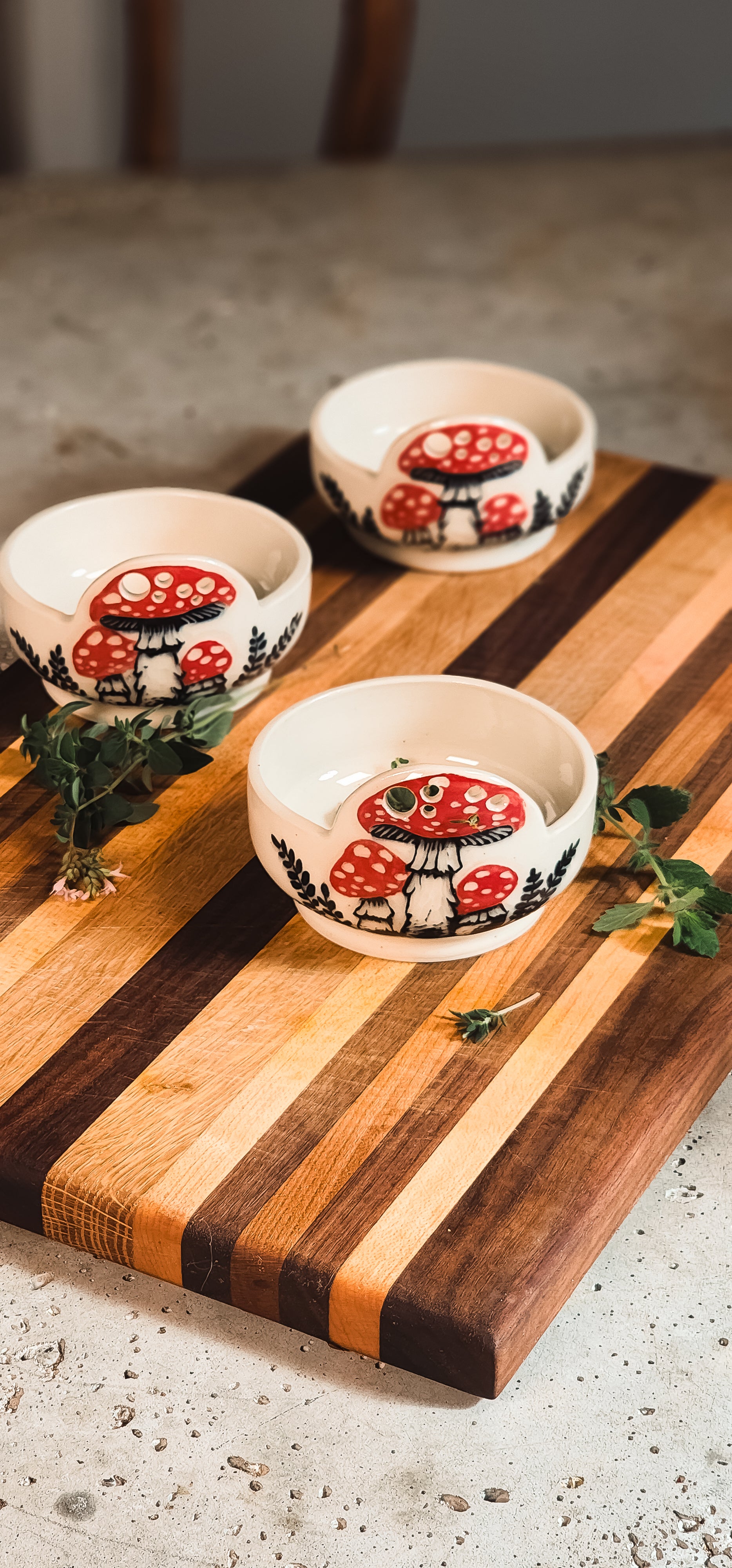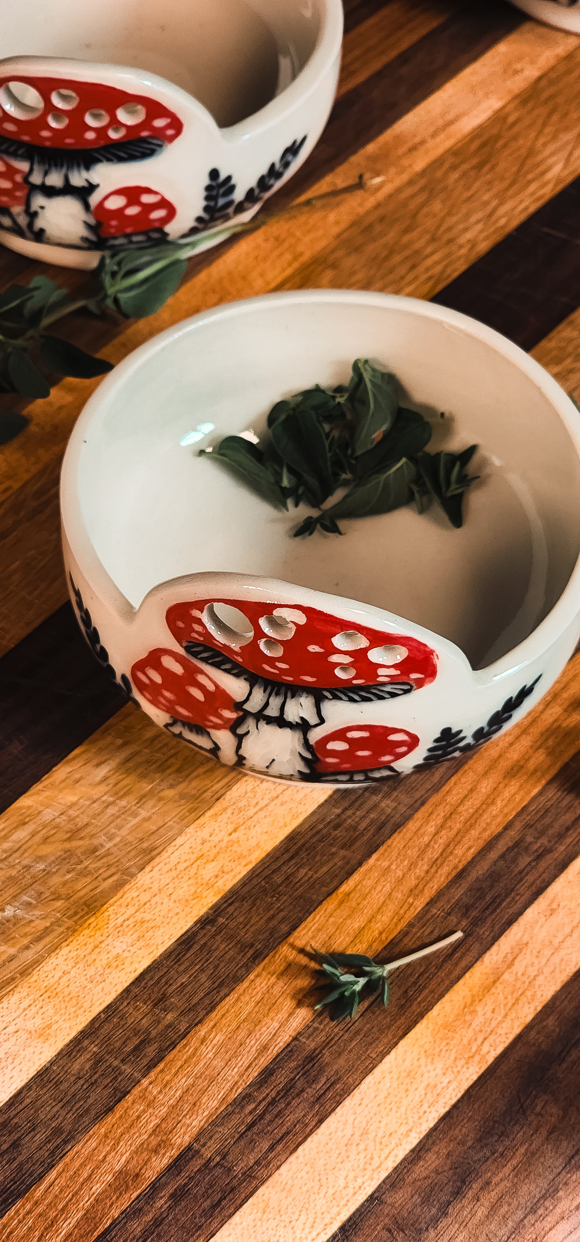 Bring a touch of woodland charm to your kitchen with this beautifully hand carved herb puller. Crafted for both function and style, it features delicately illustrated mushroom artwork that celebrates the magic of nature.