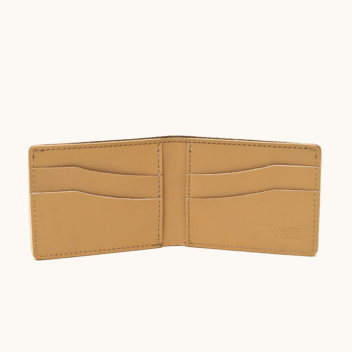 Constructed from 3.5oz. English Bridle leather, our Utility Bifold features four card-slot pockets, two hidden pockets, and one lengthwise pocket for bills. Each wallet is burnished, dyed, waxed, and stamped with our signature maker's mark.