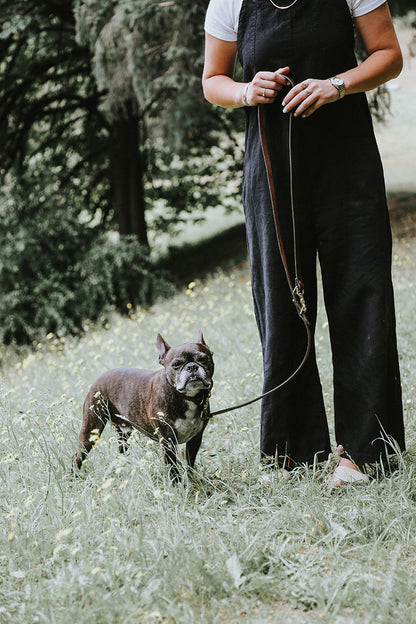 Constructed from 10/11 oz vegetable-tanned Meridian English Bridle leather, our lead features through-hole press fit rivets and a rotating brass trigger clasp for easy and reliable collar attachment. All edges are dyed, burnished, and waxed.