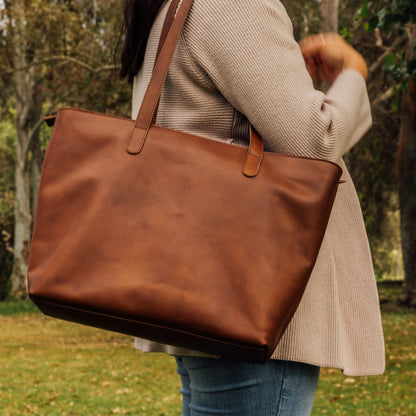 This Leather Shopper Tote is a versatile and stylish must-have accessory. Made from high-quality full grain leather, this tote bag is perfect for everyday use as a shopper or as a sleek handbag. With its durable design and chic look, it's the perfect addition to any wardrobe. Upgrade your style and functionality with the Leather Shopper Tote.