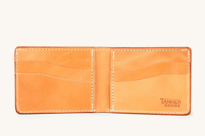 Constructed from 3.5oz. Traditional Russet Harness leather, the Bifold features four card-slot pockets, two hidden pockets, and one lengthwise pocket for bills. Each wallet is burnished, dyed, waxed, and stamped with our signature maker's mark.