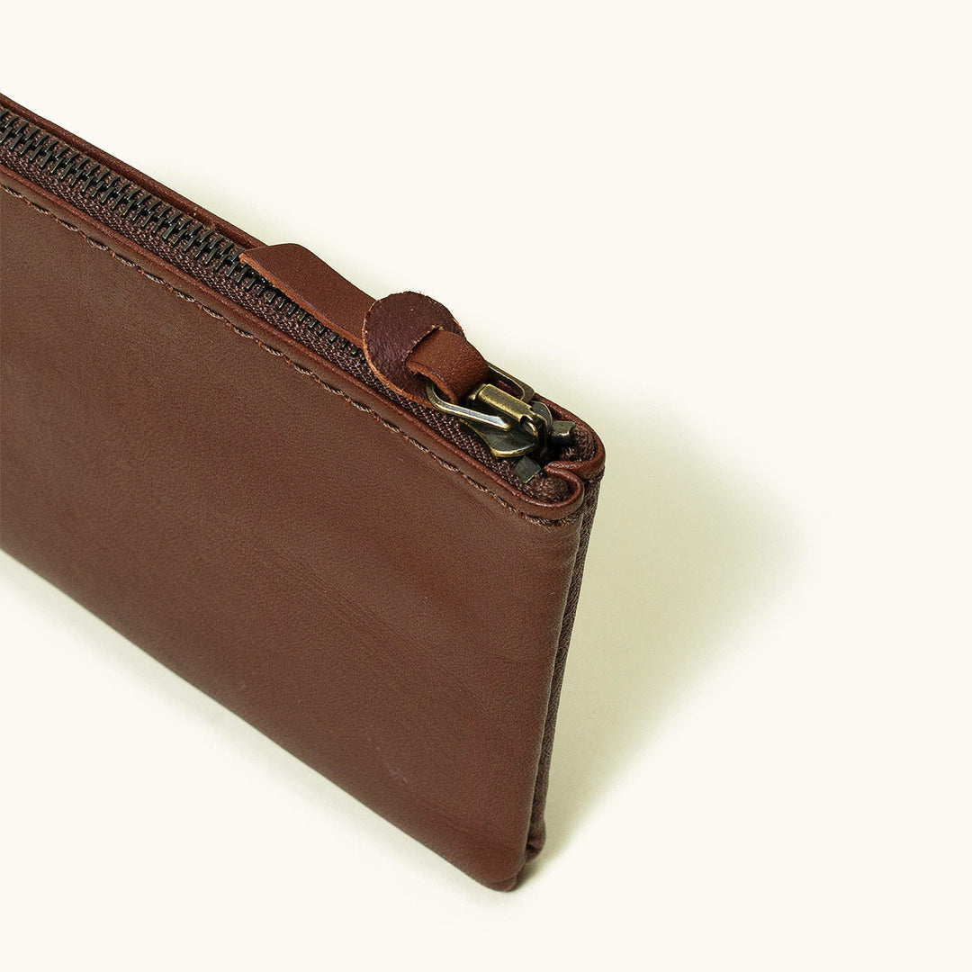 Cut from 3 oz. Meridian English Bridle leather, the Universal Zip Wallet features two card slots, and a single split bill pocket all made secure by a high quality Riri Zipper in antique brass.
